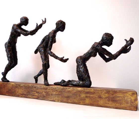 plâtre patinée sur socle bois peint