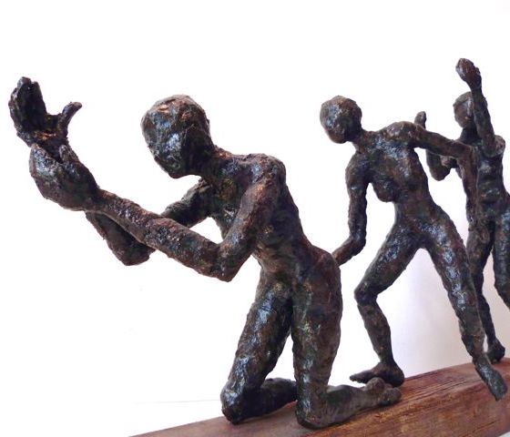 plâtre patinée sur socle bois peint